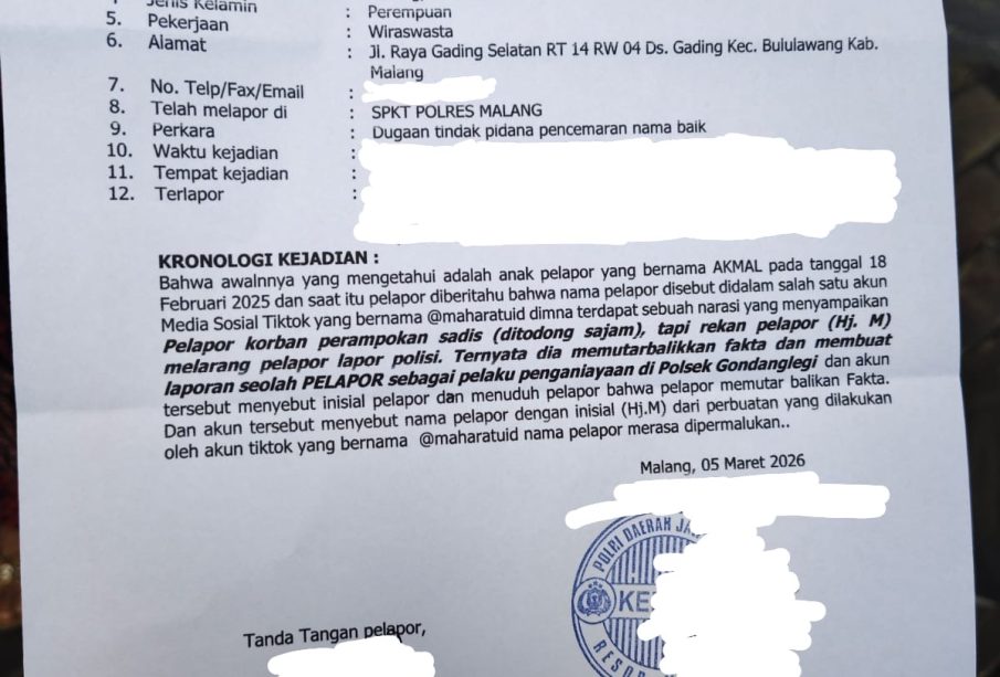 Hari ini,05 Maret 2026,Tim hukum MAKI Koorwil Provinsi Jawa Timur mengawal resmi laporan hukum dugaan kasus pencemaran nama baik,fitnah dan berita hoax dari salah satu akun tik Tok yang dengan jelas menyebut nama Hj M (baca : Hj Muclisoh).