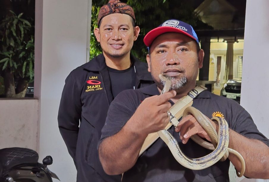 Saat ini Ular kobra tersebut diamankan dalam ruang kaca dan akan dipelihara sekaligus menjadi tontonan wisata bagi tamu yang datang ke sekretariat MAKI Jatim dengan swafoto bersama Ular kobra lumayan besar tersebut.